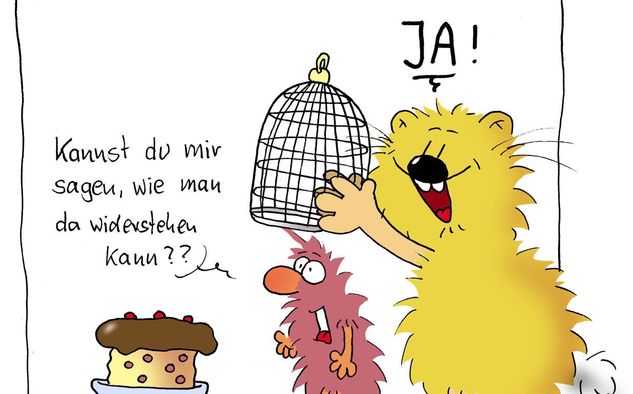 Und was den lustigen Cartoon betrifft: am Besten den Käfig über den Kuchen stellen – und ihn den Vögeln schenken (den Kuchen, nicht den Käfig), denn die brauchen nicht fasten!