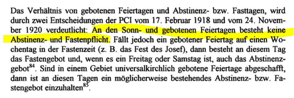 Pater Schmidberger hat nochmals betont: für uns gilt das alte Kirchenrecht, das eindeutig sagt – am Sonntag gilt kein Fasten- und Abstinenzgebot (s.o.).