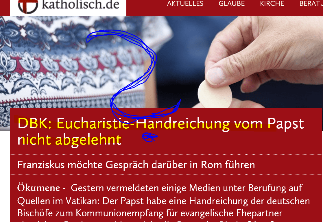 Doch wohl nicht, oder? Also die Jungs und Mädels von kath.net haben Recht – und die anderen, die sich ihnen angeschlossen haben, wohl auch ( Kath.net zu Interkommunion):