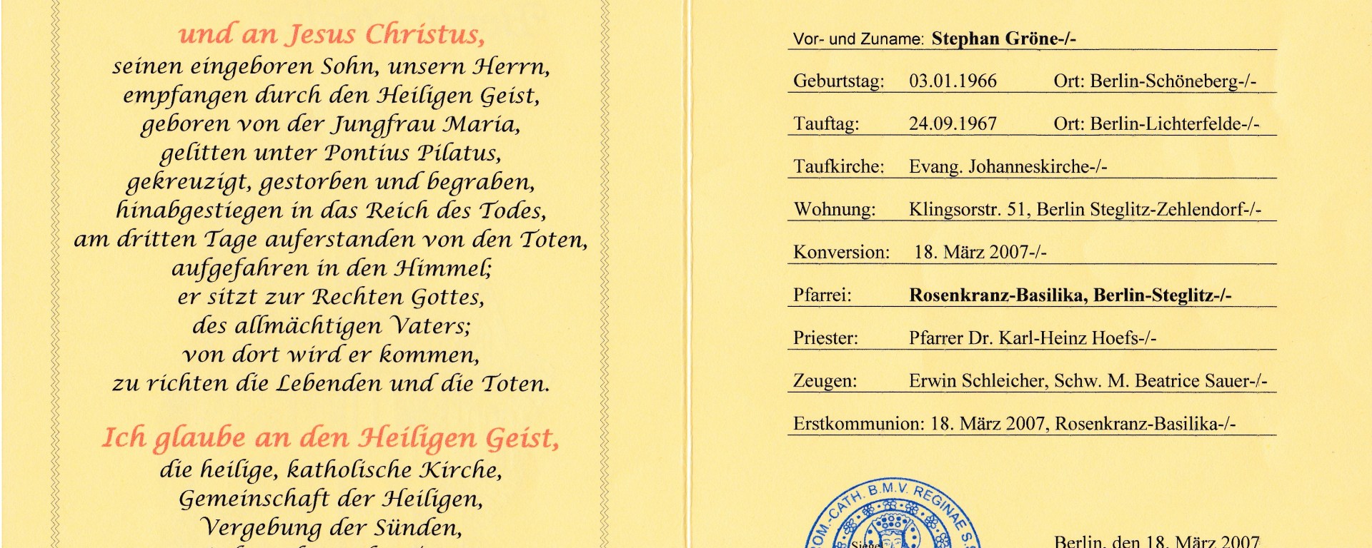 Am Fastensonntag Lätare wurde ich katholisch, das ist fast 14 Jahre her. Ich bin glücklich, denn es ist die zweitbeste Entscheidung meines Lebens. Die Erstbeste war die Bekehrung vor nun 30 Jahren.