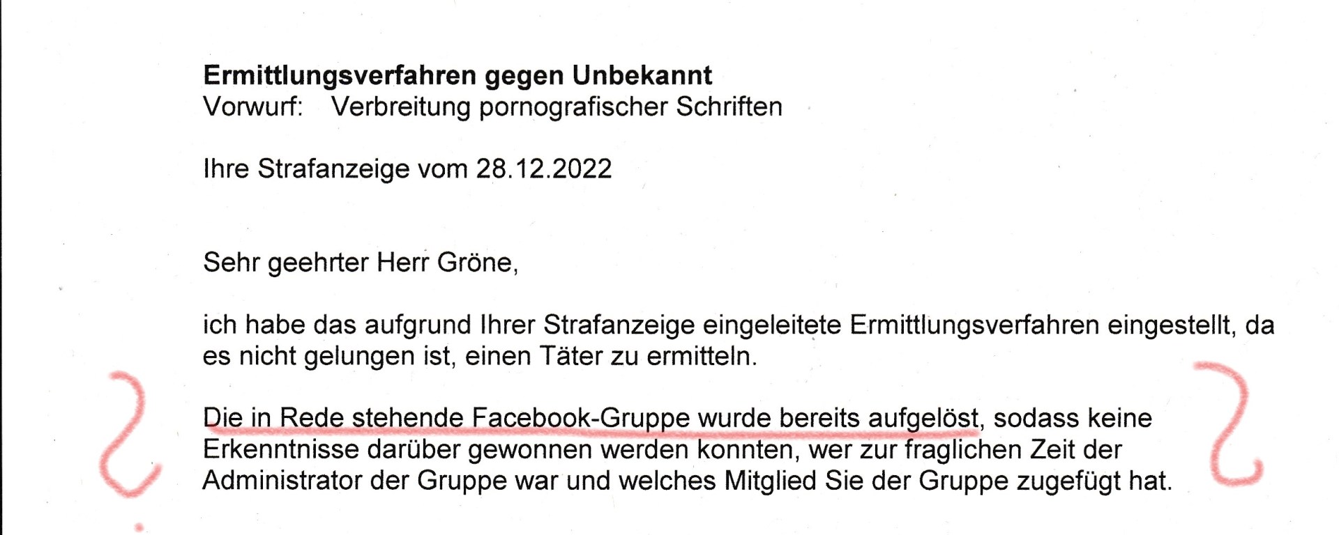 Wie die Staatsanwältin Osyka zu dem Urteil kommt „Die in Rede stehende Facebook-Gruppe wurde bereits aufgelöst“ ist mir unbegreiflich.