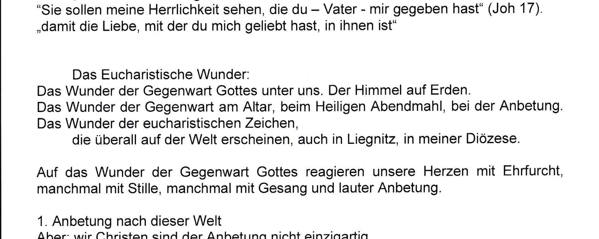 Dankenswerter Weise hat der Bischof von Liegnitz, Seine Exzellenz Andrzej Siemieniewski, mir heute den Entwurf für seine Predigt zugeschickt.