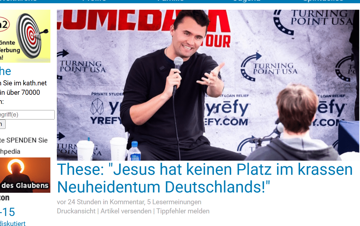 Die schöne Internetportal aus Österreich, kath.net, hat meinen Beitrag gestern unter der Rubrik ‚Prove me wrong‘ zu Ehren den bedeutenden christlichen Influenzers, Charlie Kirk, veröffentlicht: https://kath.net/news/89104