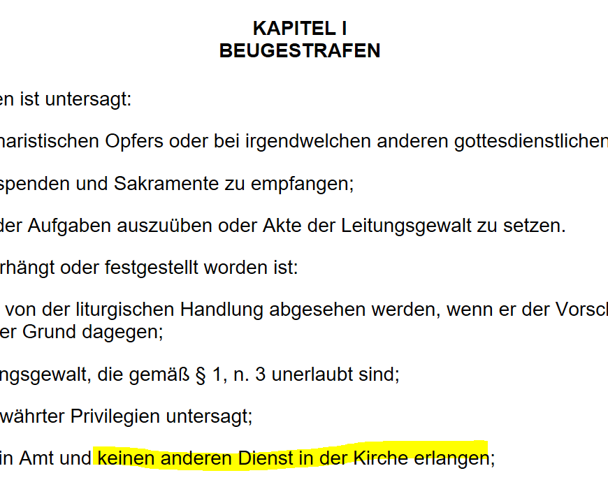 Warum eine Exkommunikation ein Segen sein kann Berlin, 21.Januar 2018 Als Getaufte sind wir in den Leib Jesu Christi eingegliedert. Von nun an können wir den Willen Gottes tun, denn unser Fleisch ist unter der Herrschaft des Geistes – dank der Teilhabe (communicatio; vgl. I Kor 10,16a) mit dem Haupt des Leibes, Jesus Christus. Weil wir Leib von seinem Leib sind, werden wir gerettet und … Exkommunikation ist Labsal für die Seele weiterlesen