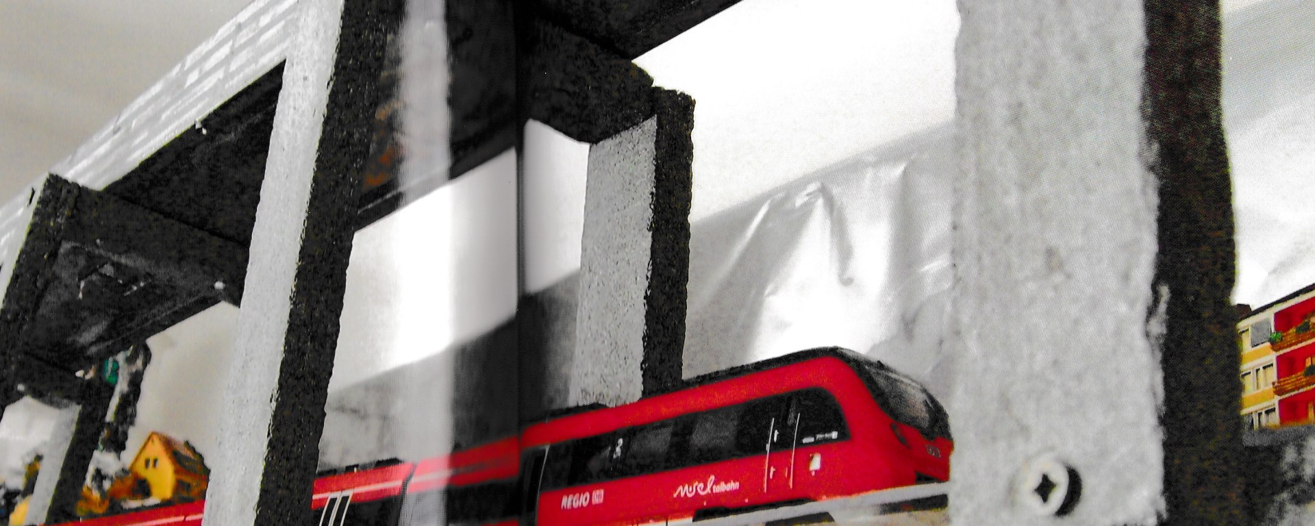 - Längste Brücke: 350 Zentimeter, höchster Punkt: 195 cm, tiefster 170cm; 25cm Gefälle auf drei Metern (s.o.; Zug schwebt buchstäblich auf Plexiglas)