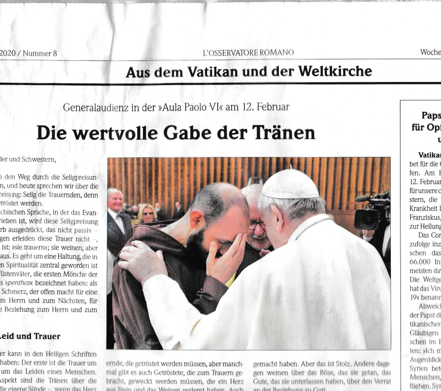 Weinen ist Reue des Herzens Berlin, 29.März 2020 Wir Christen haben uns daran gewöhnt, dass der Glaube wie ein Placebo erscheint, der ungeteilte Fröhlichkeit schenkt – nach dem Motto: ‚Wer glaubt, schwebt auf Wolke 7‘ und steht somit über allem. Viele Menschen wollen über allem stehen, weil wir Menschen nicht leiden mögen. Jesus sagt es aber ganz anders: „Wer nicht sein Kreuz auf sich nimmt, … Die Gabe der Tränen weiterlesen