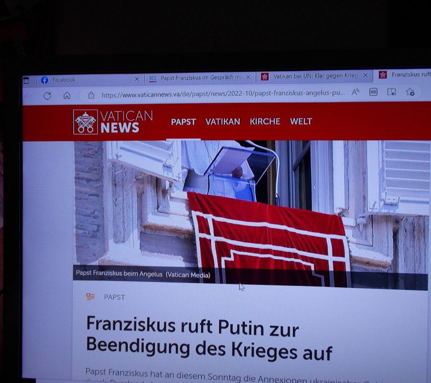 Einige Klarstellungen Berlin, 22.Oktober 2022 Der Papst wird nicht umsonst mit dem Ehrennamen Pontifex Maximus genannt: oberster Brückenbauer. Dabei bezieht er eine Position zwischen den verschiedenen Parteien und will eine Brücke des Friedens bauen. Ist Franziskus pro Putin? Es gab die Meldungen über das „Bellen der Nato vor den Toren Rußlands“: Der Heilige Vater stellte klar, dass dies die Meinung eines anderen gewesen sei, eine … Franziskus und die Ukraine weiterlesen